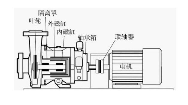 磁力泵的結(jié)構(gòu)及組成磁力泵的各部件:磁力泵由泵,磁力傳動器以及電動機(jī)三個部分組成,而磁力傳動器又由外磁缸,內(nèi)磁缸及不導(dǎo)磁的隔離套組成。