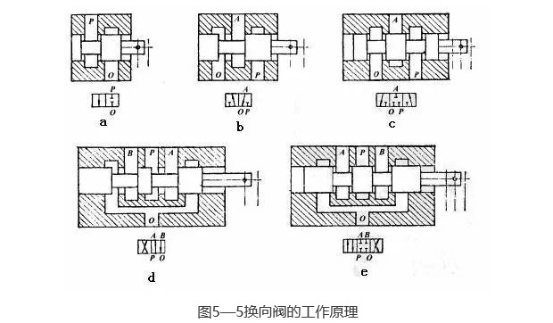 換向閥的作用是利用閥芯和閥體的相對(duì)運(yùn)動(dòng)來(lái)接通、關(guān)閉油路或變換油液通向執(zhí)行元件的流動(dòng)方向,以使執(zhí)行元件啟動(dòng)、停止或變換運(yùn)動(dòng)方向。