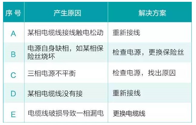 三相電機在運轉時必須由三根電纜線提供驅動電源,才能達到三相平衡運轉;如果由兩根電源線提供電源也能夠運轉,但運轉時間加長會導致電機因缺相燒毀電機。判別電機缺相方法: