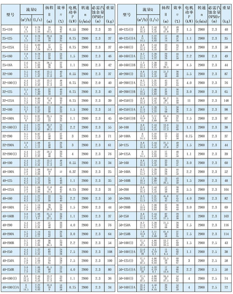 揚程范圍:5m-125m